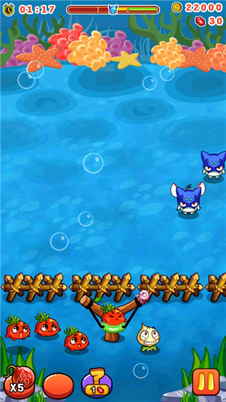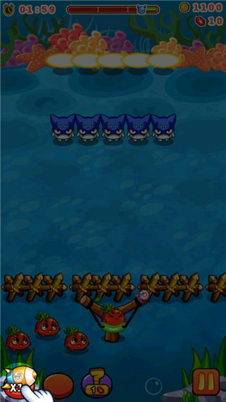 5、拉动弹弓瞄准怪物即可发射蔬菜;