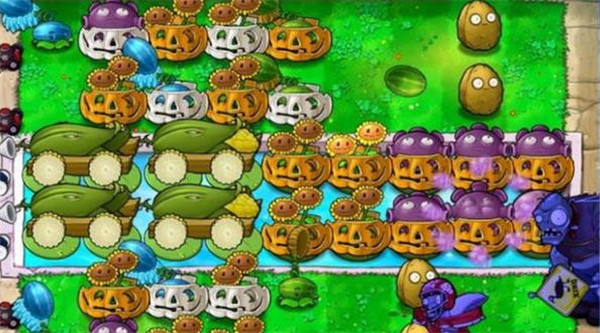 1、玉米大炮阵容,玩家可以按照下图的示例来进行摆放植物;