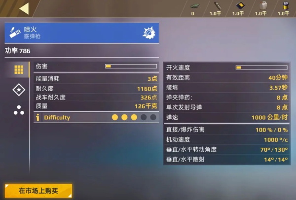 如上图中的“喷火”霰弹枪,它的耐久度相比“巨锤”而言提升至1160,并且具有326点战车耐久度。除此以外,它的弹夹中存有8发弹药,每次则能够发射8枚弹丸,单次射击的火力投射能力相比“巨锤”提升了33.3%,全弹夹射击则提升了166.67%。