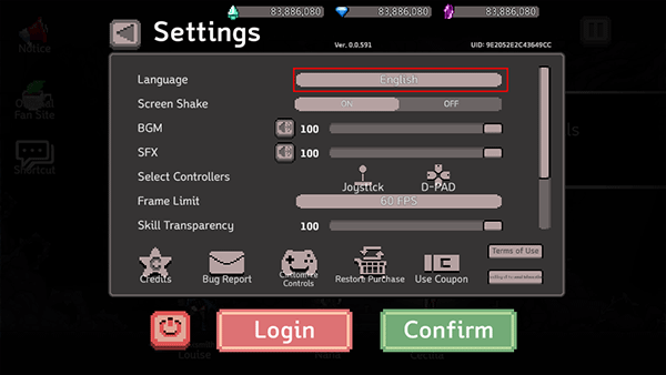 1、游戏刚进入是英文,点击上方的设置按钮