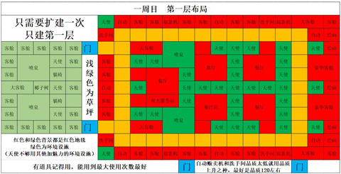 建议开局就在餐厅周围放满加魅力的植物,只留一个入口,超市也是必要的。在自动贩卖机旁边放小船室,厕所每次都会加满足,一定要有,不过绝对不要把厕所紧埃着任何建筑,否则魅力会降低;