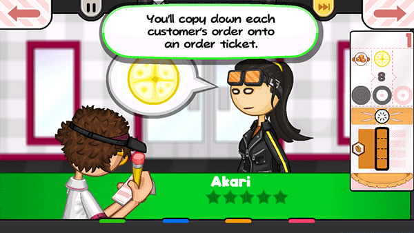 7、然后点击右下角蓝色按钮进行操作,开始工作后,你需要根据顾客的订单选择合适的原材料。右边就是顾客的详细订单