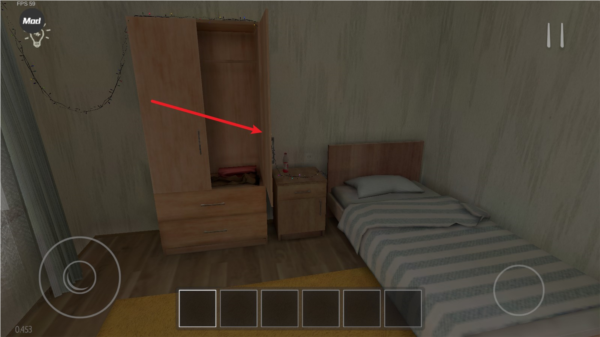 1、进入游戏后,我们会出现在自己的房间内,通过摇杆即可移动,点击物品即可进行交互,如简单的开门,打开柜子等。