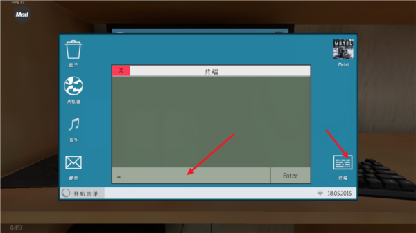 2、接着我们点击右下角的终端,会弹出来一个输入框,在这里输入代码“menu mode on”。
