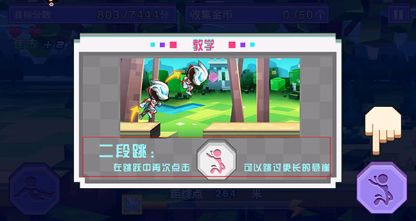 4、玩家可进行2次点击跳跃键进入二段跳以便跳过更远的悬崖