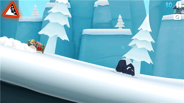 4、游戏启动后,雪崩预警牌将在屏幕左上方高频闪烁,提示危险迫近。即使已被雪浪追至身后,只要及时完成起身动作(快速双击屏幕),仍可借坡道反弹或障碍物弹射实现惊险反超——真正的高手,永远在雪崩边缘掌控节奏;
