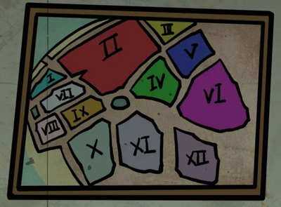 ① 绿色坑旁转盘密码 = 墙面星图 × 地图等高线 —— 两重投影叠加即得正确序位;