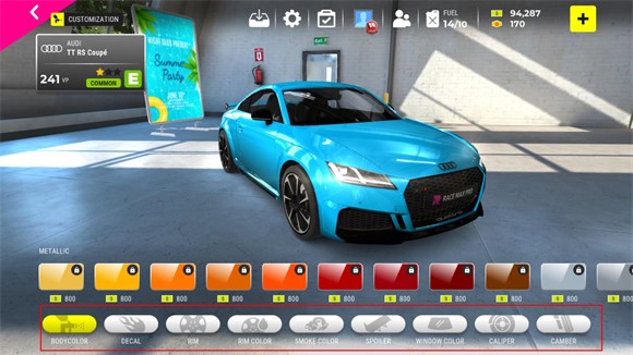 1、在主界面点击左侧的customize可以对车辆改装。