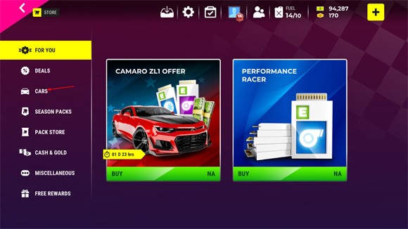 2、在商店界面点击cars可以进入买车界面。