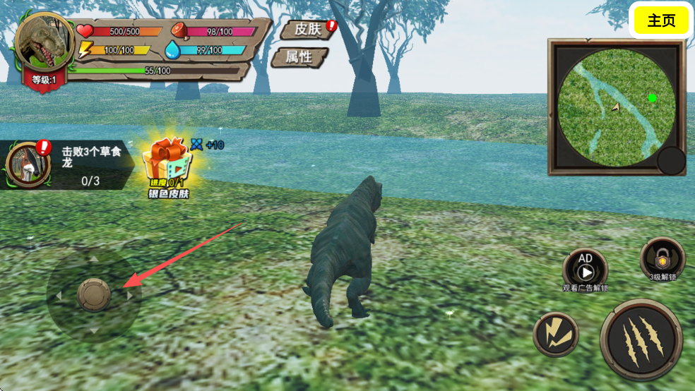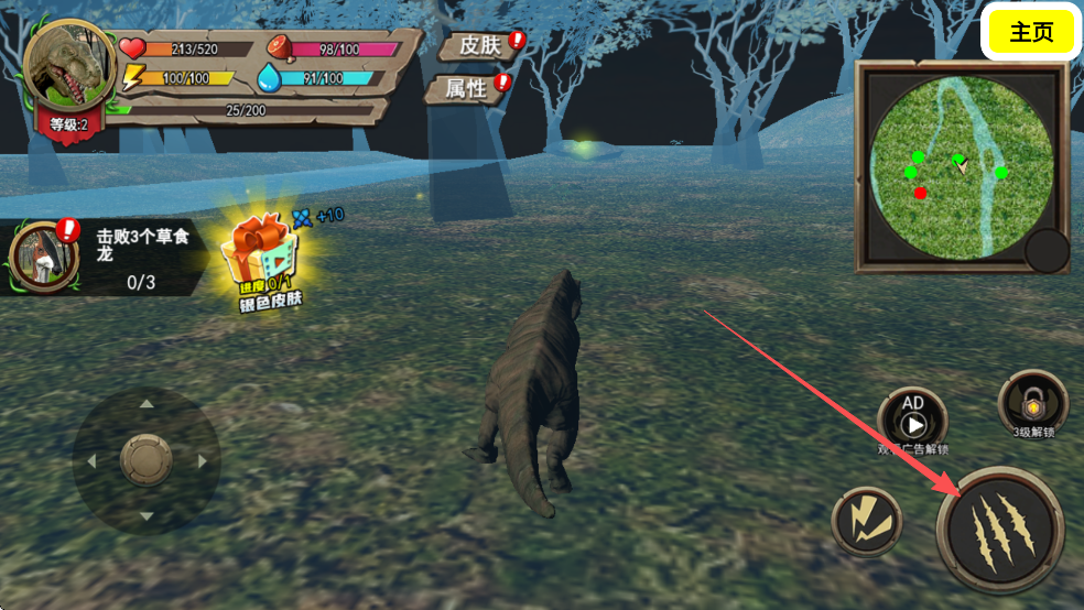 2、在这个残酷的世界,你将扮演一只霸王龙去击败比你更弱小的生物