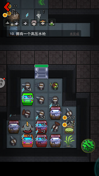 先提升床的等级和建造两个炮台,因为这个时候猛鬼还没有到来,所以优先提升床铺的等级快速获取金币;然后再去提升门的等级,之后床铺的等级可以暂停一下,优先提升门的等级,否则很容易被猛鬼突破,提升到需要电力的时候再去商店购买游戏机,否则会很容易被猛鬼突破。