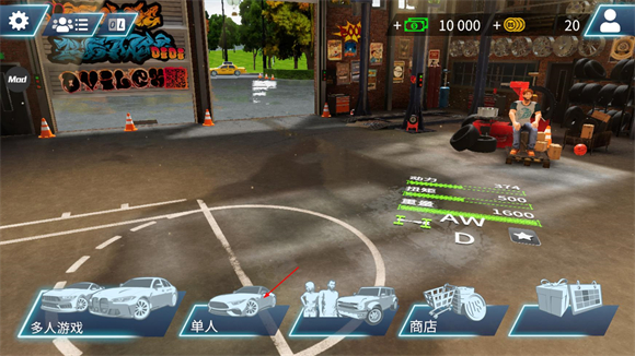 1、打开游戏之后,选择车库选项进入。