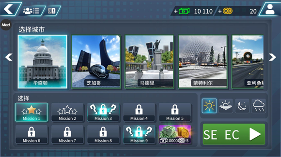4、任务模式下,玩家需要遵守交通规则来完成不同的目标,触犯的错误越少奖励越多。