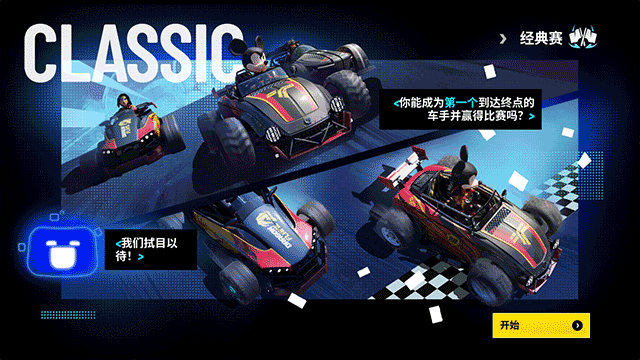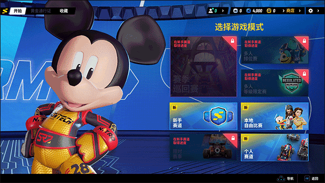 1、在主界面点击了右下角的“开始”后,玩家就可以在模式选择界面选择自己想要玩的游戏模式了。其中地图都是采用迪士尼各大经典作品为背景,不仅有着专属的地形还有各种经典画面可以看到。