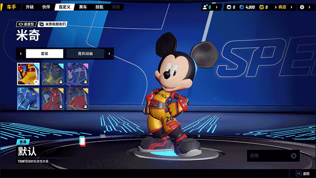 3、在自定义内容中,玩家可以通过点击套装中解锁的物品对人物进行变换,可以改变的元素有服装和胜利动画,胜利动画目前来看仅限前三名;