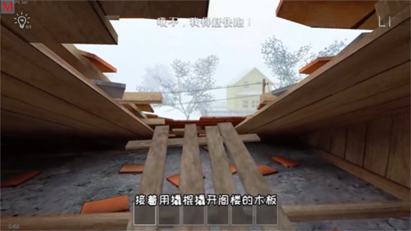 3、消灭大黄蜂后就能拿到一把撬棍,用撬棍撬开阁楼的木板。