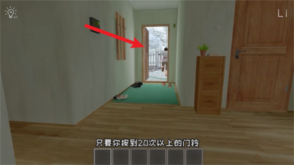 这是最简单的一种结局,我们只需把门铃按到20次之后,妈妈就会发疯,然后打开前面的小门,我们跟在后面悄悄的离开就行了,千万要等妈妈离远一点在出门,不然会被妈妈回头抓住的。