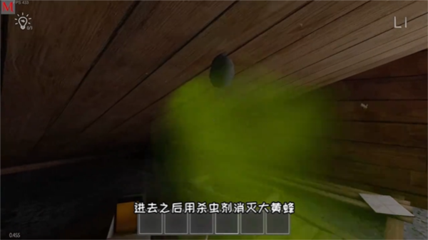 2、接着进入到阁楼当中,用杀虫剂消灭大黄蜂。