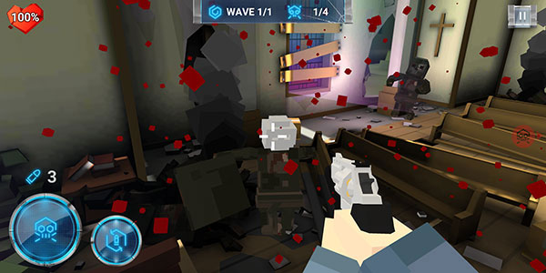 2、进入关卡后,拖动右侧屏幕可以移动准星,左侧为开火和换弹按钮。