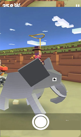 2、然后赶快继续按着不丢,方可骑上它快奔。大象的抗撞性极强,木块也无法阻挡,奔行往左右时要稳定好,但是不可碰到其他动物哦。
