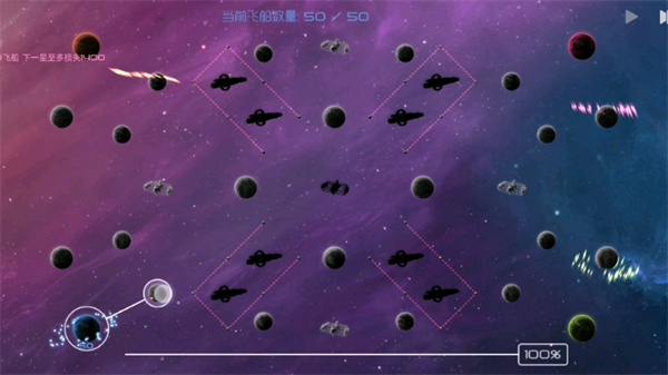 2. 遭遇敌方势力时需谨慎评估兵力对比,采用分兵策略左右滑动屏幕下方分兵条调整百分比,以多打少逐步蚕食敌方控制的星球。