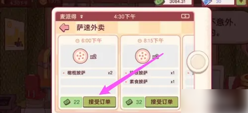 等待快递员进店,和他对话,然后选择披萨,点击供应订单。
