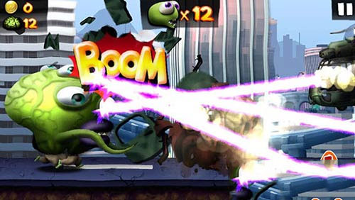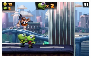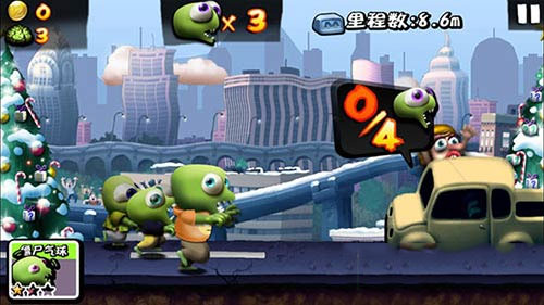在游戏中,玩家不需要控制僵尸的左右移动,玩家可以点击屏幕,让僵尸跳起来,当玩家单击一下则僵尸会跳跃起来,当用户长按屏幕,僵尸便会在跳跃到一定高度后,以一种滑行的姿态在空中滑翔一段路程。