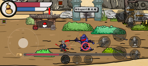 4、正式进入游戏如图,游戏采用横版移动操作,玩家需控制吗喽与众多BOSS战斗;