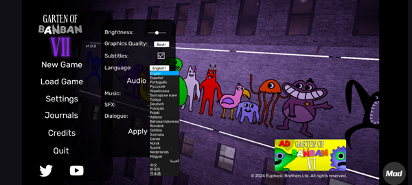 班班幼儿园7内置mod菜单版是一款十分刺激的冒险解谜类密室逃脱手游,英文名叫Garten of Banban 7,也是《班班幼儿园》系列的第七部作品,游戏延续了一贯恐怖烧脑解谜的玩法,并且支持中文、英文、西班牙语、日语等多国语言,而且海量的交互式道具和各种头脑风暴版的难题等着你来解答。