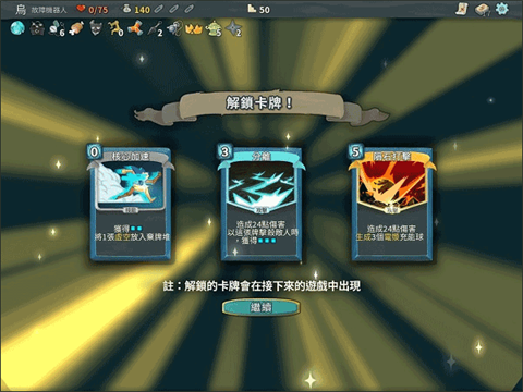 1、游戏中玩家将操作勇者前往高塔挑战各大Boss,在挑战的过程中不断的尝试新的组牌方式,搭配上路上获得的遗物想办法爬上塔的顶端。