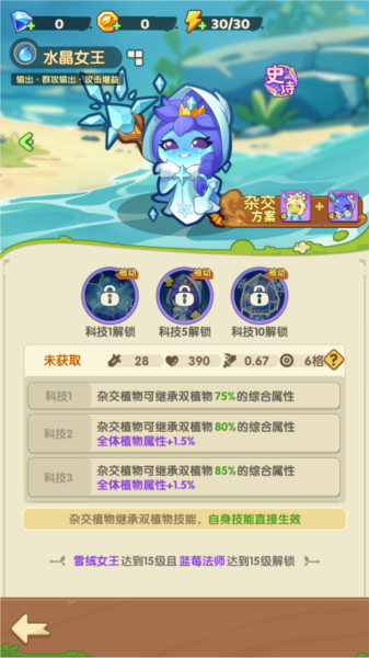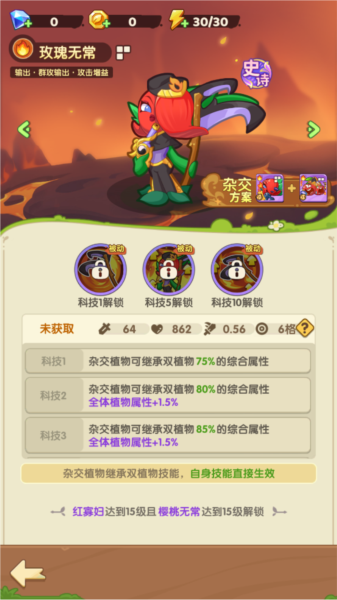 其中甘蔗、苹果、梨、山竹这四种植物均为红色,需要攒钻石去搞,这几组植物均可杂交而且杂交后原本技能不会消失。