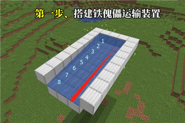 运输装置一般采用3格宽、8格长,当铁傀儡刷出后,水流便会将其冲下平台。
