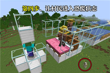 但这种情况下是无法生成铁傀儡的,一是村民数量不够,二是没有设置集合点,不过我们可以利用前文提到的“三个村民同时看到僵尸便会催生铁傀儡”的先决条件来跳过这些要求。