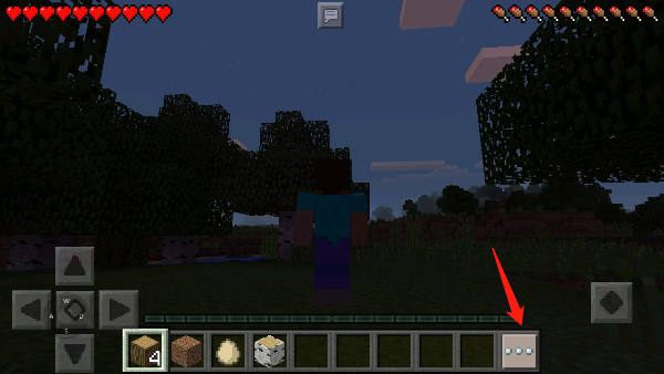 5、这个左上角的红色心是生命值,右上角的鸡腿是饥饿度,当鸡腿达到0个的时候,红心生命血量会开始减少。