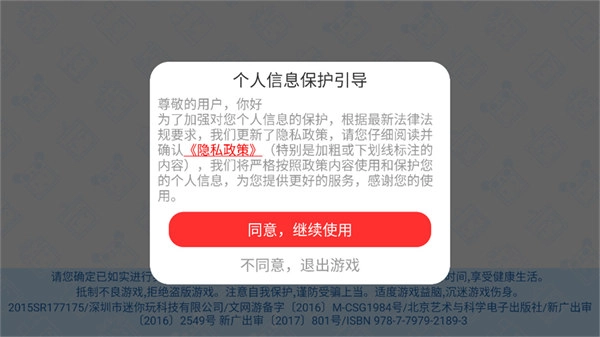 1、打开游戏之后阅读隐私政策和用户协议,点击同意之后就能进入到游戏;