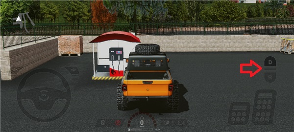 5、点击右上角的钥匙启动车辆,点击左边可以控制方向、右边是加速以及刹车;