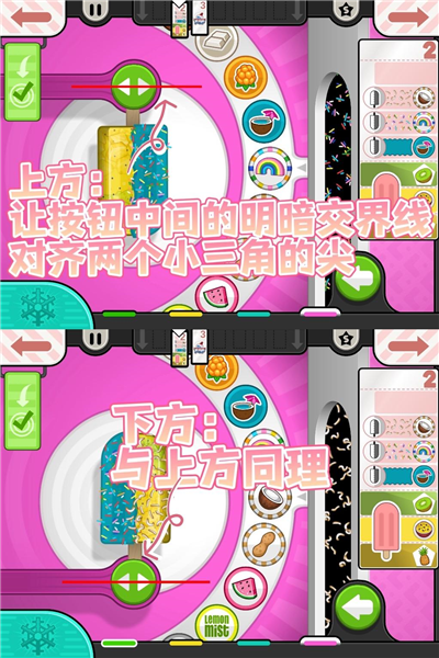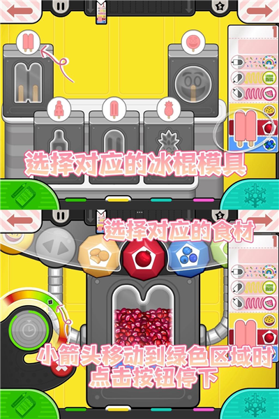 1、根据客人需求,选择对应模具,选择对应的食材,小箭头移动到菱形方块的位置时点击按钮停下