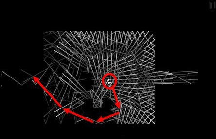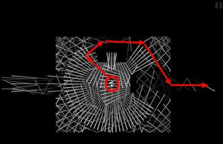 4、打开开关后按照原路返回你会发现之前上方的凹槽变化到下方,同样使用刚才的方法从下方的缝隙道路中通过,在回到起点的位置即可到达终点。