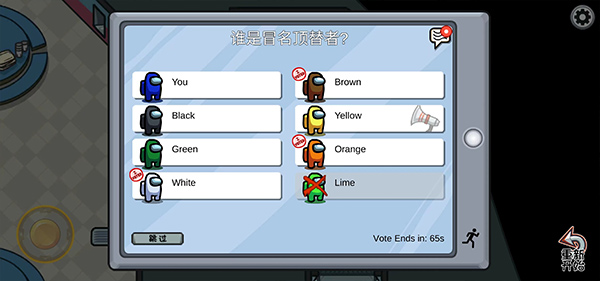 5、当冒名顶替者击杀船员之后,我们需要进行投票,这个时候就很需要考研观察能力和推理能力了,擦亮眼睛选择凶手,投出凶手获得胜利。