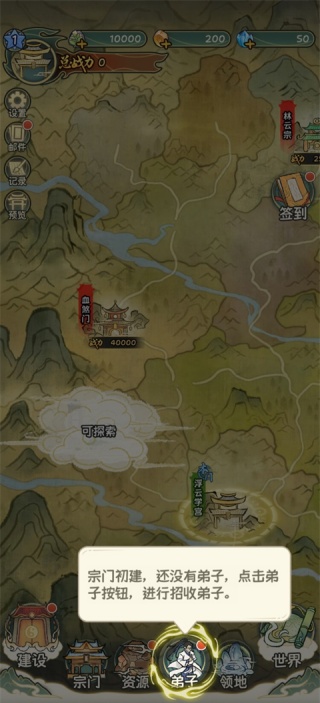 1、玩家进入游戏后,招募弟子逐步占领这个世界,达到战力即可攻占