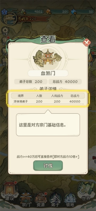 3、壮大你的门派,每一天都有大量的弟子加入,让你的门派欣欣向荣,每一天都在提高你门派知名度;