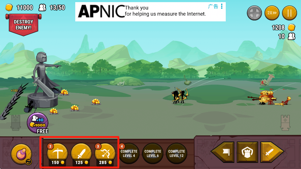 3、通过自己的策略来击败敌军,摧毁他们的雕像吧