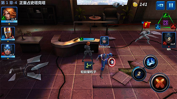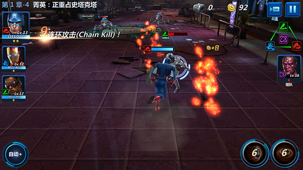 移动施法机制要求玩家预判敌人攻击前摇:例如绿巨人的跃击有0.8秒起跳延迟,需在BOSS抬手瞬间后撤规避范围震波;而黑寡妇的毒镖则需计算弹道飞行时间,在敌人位移路径上提前布控。合理分配技能CD与普攻节奏,才是低损通关的核心。