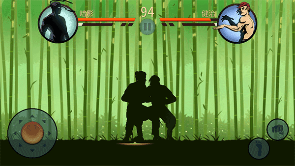 1、通过虚拟摇杆配合一拳一脚两个按钮来控制人物做出一系列的动作,操作十分简单容易上手。