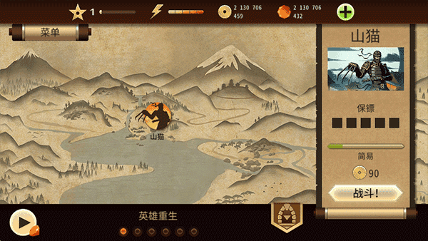 挑战赛:打败第一幕的山猫后,第二章开始才有的比赛,钱多,经验多,部分关卡比较考验技术,对装备要求不高,但是技术要求比较高,打完一关少一关。