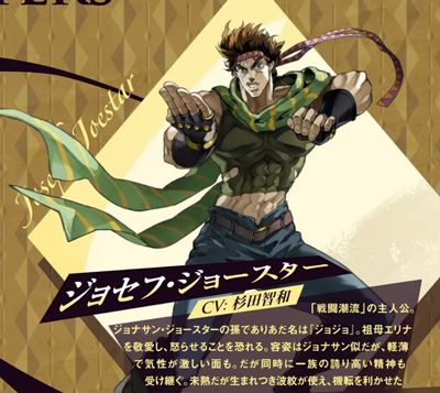 漫画《JOJO的奇妙冒险》系列及其衍生作品中的角色,同时也是第二部《JOJO的奇妙冒险:战斗潮流》的主角。第一代JOJO乔纳森·乔斯达的孙子,是使用波纹气功的天才。
