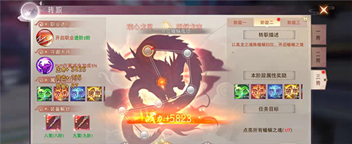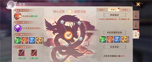 转职分为一转,二转和三转,每一次转职都有三个阶段,小编今天要讲的是关于三转的内容,三转的三个阶段分别是一转蛟龙归位,二转蟠蘺归位,三转真龙归位,今天小编主要讲的是阶段二中的蟠蘺归位任务的中的蟠蘺之魂怎样获取,想要完成三转中的阶段二任务,就需要玩家们点亮所有的蟠蘺之魂,所有的是多少呢,不要慌是七个,只要玩家收集齐七个蟠蘺之魂就可以完成任务。