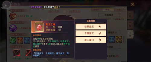 其实蟠蘺之魂也叫真龙之魂,只有玩家的等级达到二百六十五级的玩家才可以开启哦,玩家想要获得该种道具,可以有三个位置去挑战获得的,分别是世界魔王,专属魔王和魔王巢穴中进行战斗获取,并不是玩家挑战哪个魔王都会掉落真龙之魂的,玩家需要击杀五阶或者是五阶以上的魔王才有很大可能掉落的,处了上面三种方法去收集之外还有一种方法,既省时又省力,当玩家很忙没时间在线的情况下,可以进行野外挂机处理,这样也是可以有机会掉落蟠蘺之魂的。