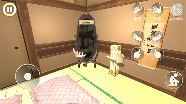 4、点击“同行”指令,她会自然跟上你的步伐,穿过阳台藤蔓、绕过书架转角。步调一致的行走本身,就是一种温柔的承诺。