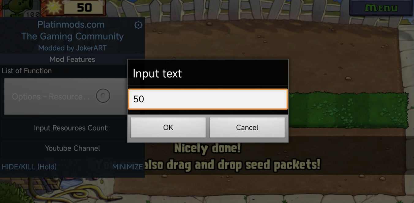 1、当你有50阳光时,打开内置菜单点击下方的【Input Resources Count】选项。